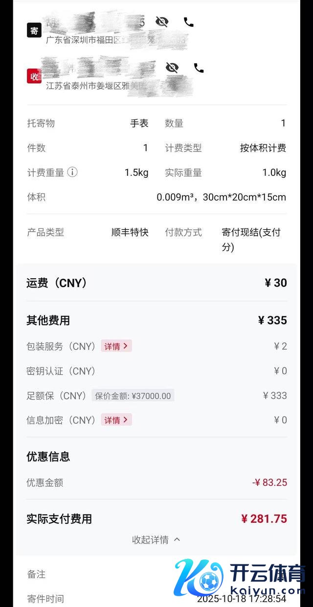 为了讲授腕表的价值,罗先生向记者提供了腕表购入的收条凭证、两只表的专属序列号等。罗先生提供的收条浮现,单只劳力士腕表的价钱为19.5万迪拉姆,约合40万东说念主民币。“洽商到是讲求物品,为保险送货安全,主动提议购买保价工作,自行遴荐交纳333元保费;同期条件收件递次需通过密钥认证证据收件东说念主身份后,再请托快件。”
