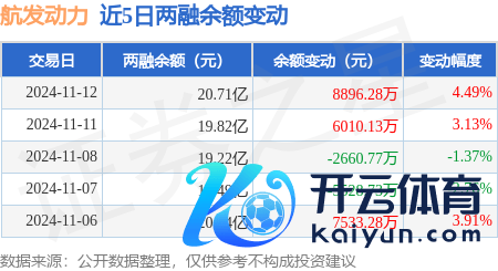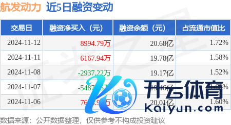 本站音书,11月12日,航发能源(600893)融资买入2.55亿元,融资偿还1.65亿元,融资净买入8994.79万元,融资余额20.68亿元,当日融资净买入名依次50。