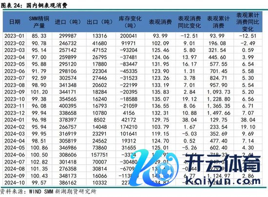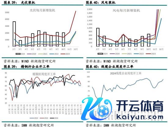新动力汽车延续高增长,风电及光伏装机10月亦呈现高增长。10月国内新动力汽车产量同比增长48.6%至142.8万辆,1-10月累计同比增多36.3%至990万辆。下半年国内电源投资增速加速,10月电源投资同比增长12.8%至1222亿元,1-10月累计同比增长8.3%至7181亿元。10蟾光伏装机同比增长50%至20.42GW,1-10月累计同比增长27%至181.3GW。10月风电装机同比增长74.4%至6.68GW,1-10月累计同比增长22.76%至45.8GW。2024年电网投资大幅超出商场预期, 10月电网投资同比增长17%至520亿元,1-10月累计同比增长20.7%至4502亿元。国网年中会议上调投资预算,2024年电网投资将初次高出6000亿元,同比新增711亿元,重心新增投资主要用于特高压交直流工程建设及关系电网矫正升级。电网投资已成为2024年国内铜需求的主要拉动项。