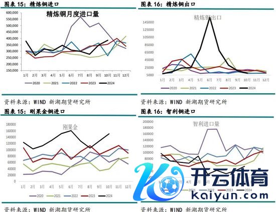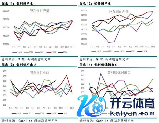 受益于Escondida产量的竖立和QB2样子标逐渐达产,下半年智利铜产量增速超预期;但秘鲁本年以来产量有所下滑,不足预期。最新数据炫夸,10月智利铜产量同比增多6.7%至49.2万吨,1-10月智利累计产铜448万吨,同比增多3.48%,增幅15万吨。从智利铜出口结构来看,2024年智利大幅增多了铜矿的出口量,精铜出口量则显著下滑。1-9月智利铜矿出口同比增多45.6万吨至270.9万吨;精熟铜出口同比下降7.9万吨至142.2万吨。9月秘鲁铜产量同比下降1.17%至23.2万吨,1-9月秘鲁累计产铜199万吨,同比微降4809吨。
