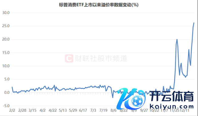 同期,标普花费ETF近期的溢价率也连刷历史新高。为止本日收盘,其当今全体溢价26.2%,不仅在一众跨境ETF中位居首位,同期亦然时下溢价率最高的ETF。回归其上市以来行情,标普花费ETF曾在11月下旬也一度迎来高溢价情景,于11月28日录得19.99%的溢价率,为其彼时历史最高溢价数据,不外干与12月后,其溢价情景有所回落,直至近日再度拉升。