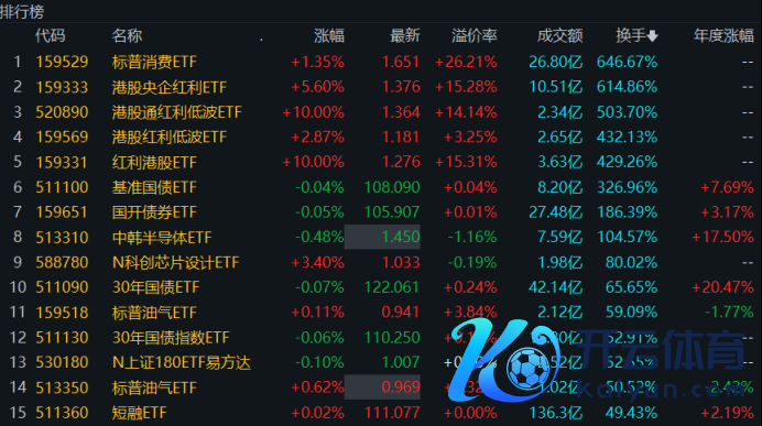 开端:@财联社APP微博体育游戏app平台 财联社12月26日讯(裁剪 梓隆),本日(12月26日),ETF市集呈现高热情景,为止收盘,累计共有8只ETF换手率单日超100%。其中,岁首上市的标普花费ETF高度活跃,全天换手率达647%,溢价率也至26.2%,其盘中一度溢价近30%。 注:本日成交额居前的跨境ETF(为止12月26日收盘) 冷门新基热度又起,溢价数据连日新高 近2个月以来,标普花费ETF一改此前震憾走势而时时活跃,为止本日收盘,以11月6日于今的37个来曩昔统计,其累计拉升近4