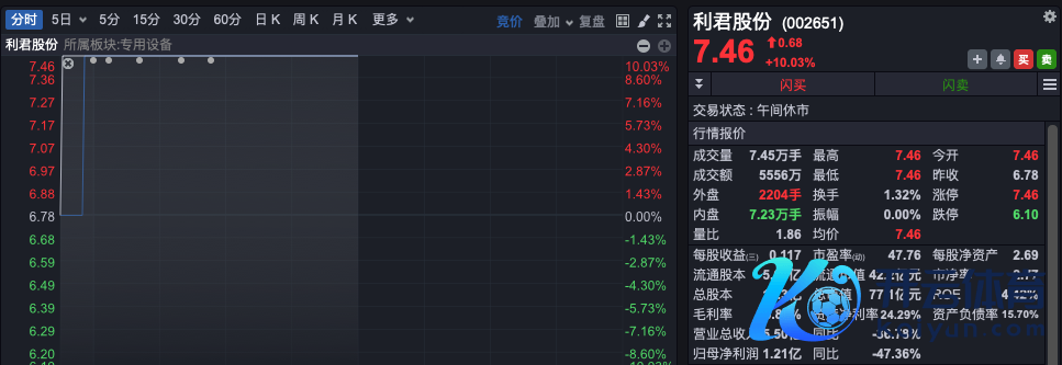 国防军工股早间集体走强,航空制造办法领涨,板块指数大幅高开高走,盘中一度放量涨逾4%,不到1小时成交就率先昨日全天成交。利君股份、成飞集成、航发科技等多股开盘一字涨停,立航科技、真金不怕火石航空等也大幅高开后快速封板。
