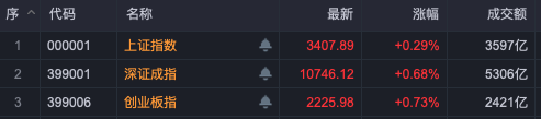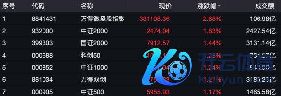 当天早盘,A股举座颠簸上扬,小盘成长股不时领涨,中证2000指数涨近2%,中证1000、中证500、科创50等指数也均涨逾1%,上证指数则时隔半个月后再度站上3400点。超4100只个股高涨,成交有放大的趋势。
