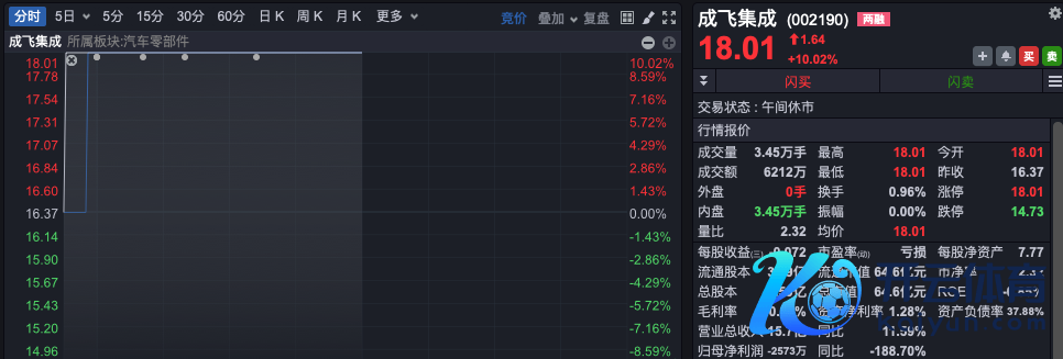 新动力产业链早间再度全面上攻,氢动力办法领涨,板块指数放量高开高走。川环科技开盘20%一字涨停,股价创8年来新高(复权);柔顺电气略低开后,仅约1分钟就垂直拉升至20cm涨停;康普顿、卧龙电驱、蓝科高新等亦强势涨停。