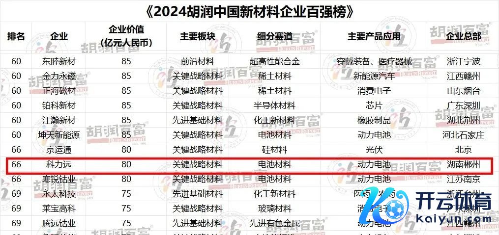 7月26日,胡润征询院初度发布《2024胡润中国新材料企业百强榜》,列出了中国新材料鸿沟最具价值的非国有企业,科力远成效上榜。而在9月10日,中国动力经济征询院发布了“2024宇宙新动力企业500强”榜单。这份论说2011岁首始以来,已成为反应宇宙新动力产业发展基本特色、最新变化和迫切趋势的风向,科力远也成效登榜。