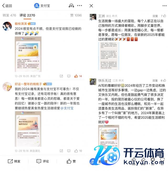 还有网友留言:「2024 嗅觉有点不顺,然则支付宝说我还是作念的很棒了!」