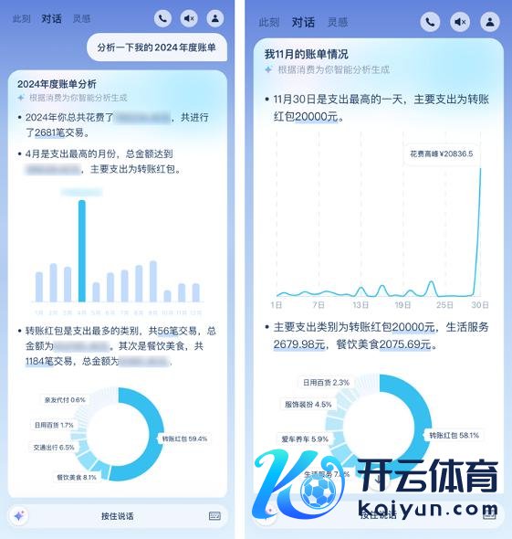 然则支小宝并莫得使用固定的 H5 模版,而遴荐在得回用户授权后,让 AI 基于其支付宝账单数据进行提真金不怕火生成。用户只需要在支付宝首页下拉或下载支小宝 App,就能收到一份 AI 为我方「量身」生成的私有年度转头。